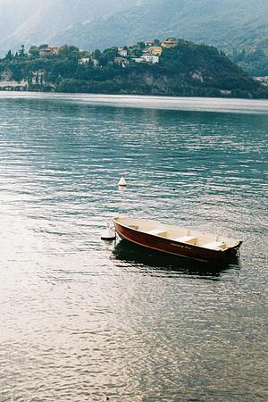 An empty boat floating at Lecco. Kodak Gold 200.